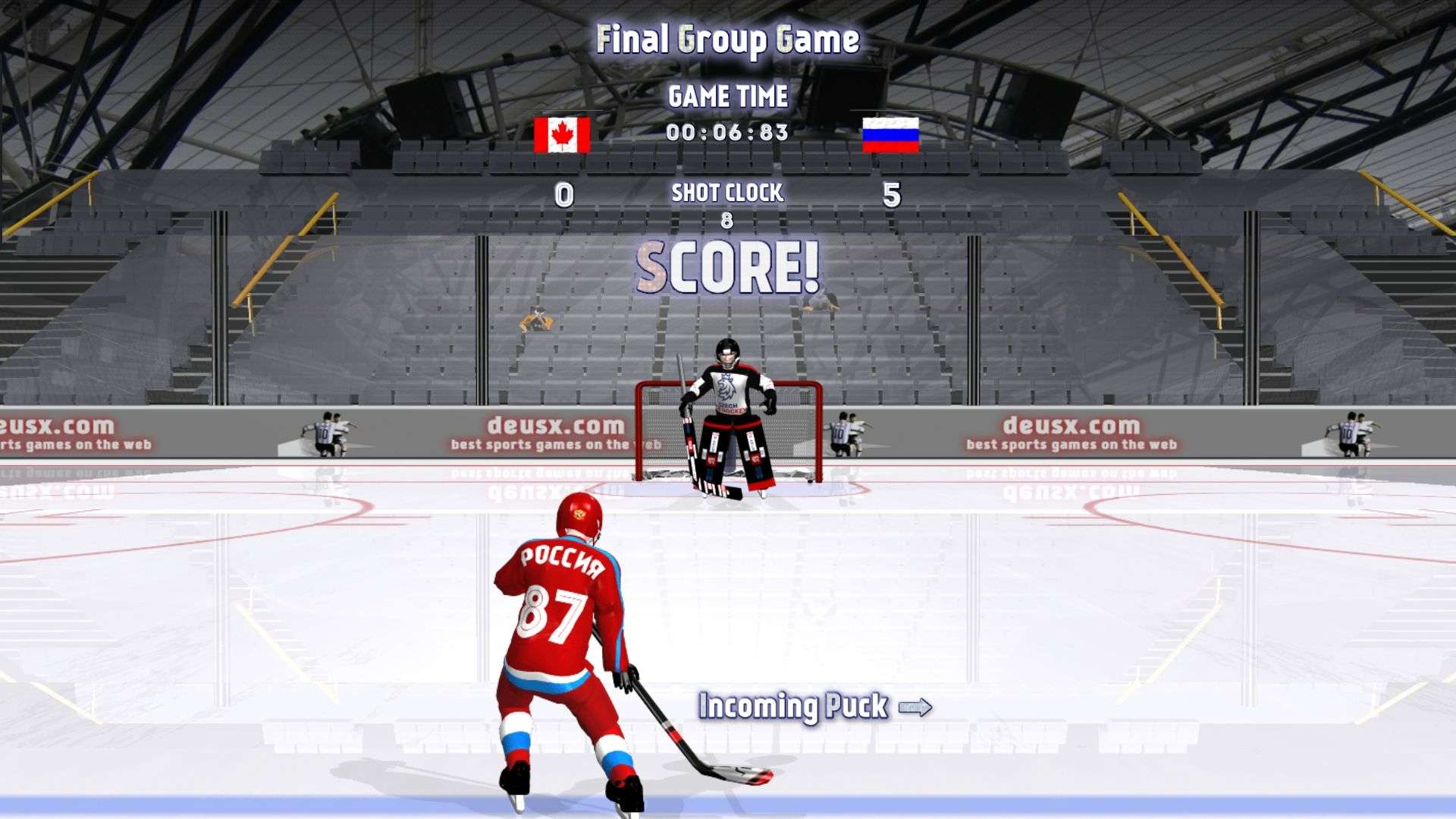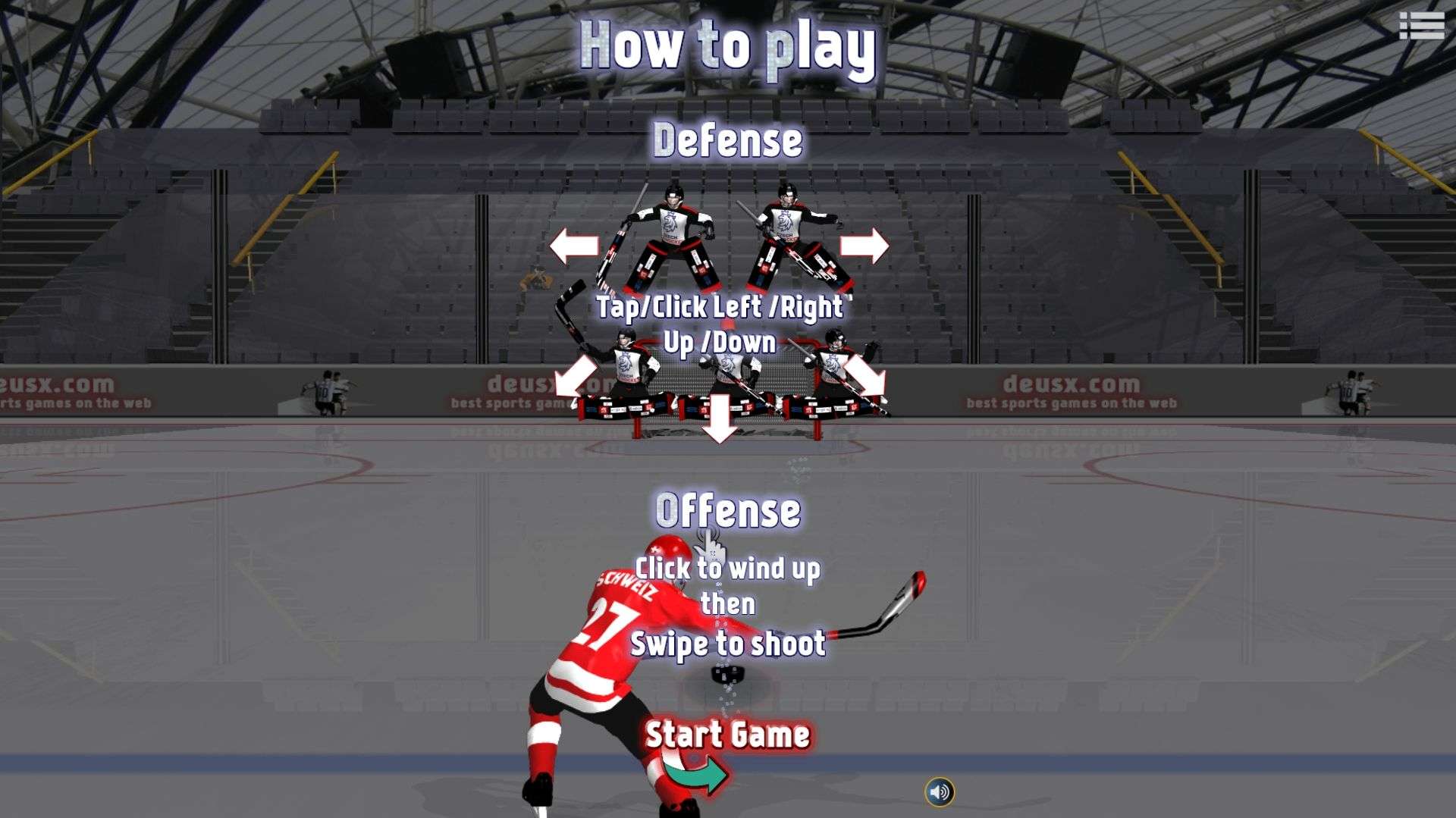 The movement of the goalkeeper is completely guided by your operation. Whether you click the mouse or tap the screen with your finger, the position where you click or tap is where the goalkeeper will move quickly. With this operation, you can more flexibly block the puck shot by the opponent towards the goal and strive to defend the goal line.
