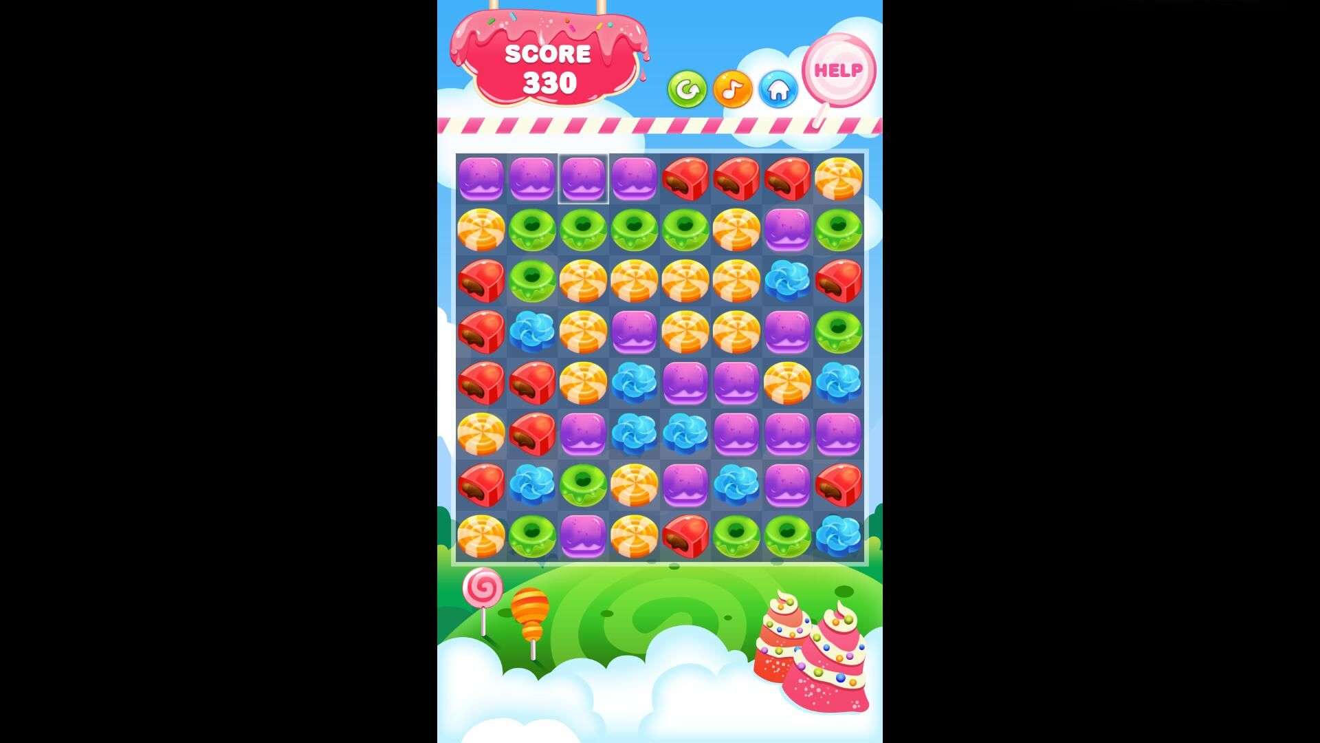 Arrange 5 or more candies of the same color into a straight line—horizontally, vertically, or diagonally. Once aligned, the candies will automatically crush and disappear.