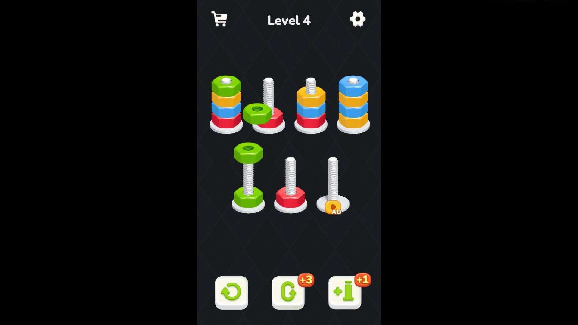 Dive into a satisfying color-sorting adventure with Nut Puzzle: Color Sort! Your goal is simple – sort the colorful bolts until each group shines with a single shade.
