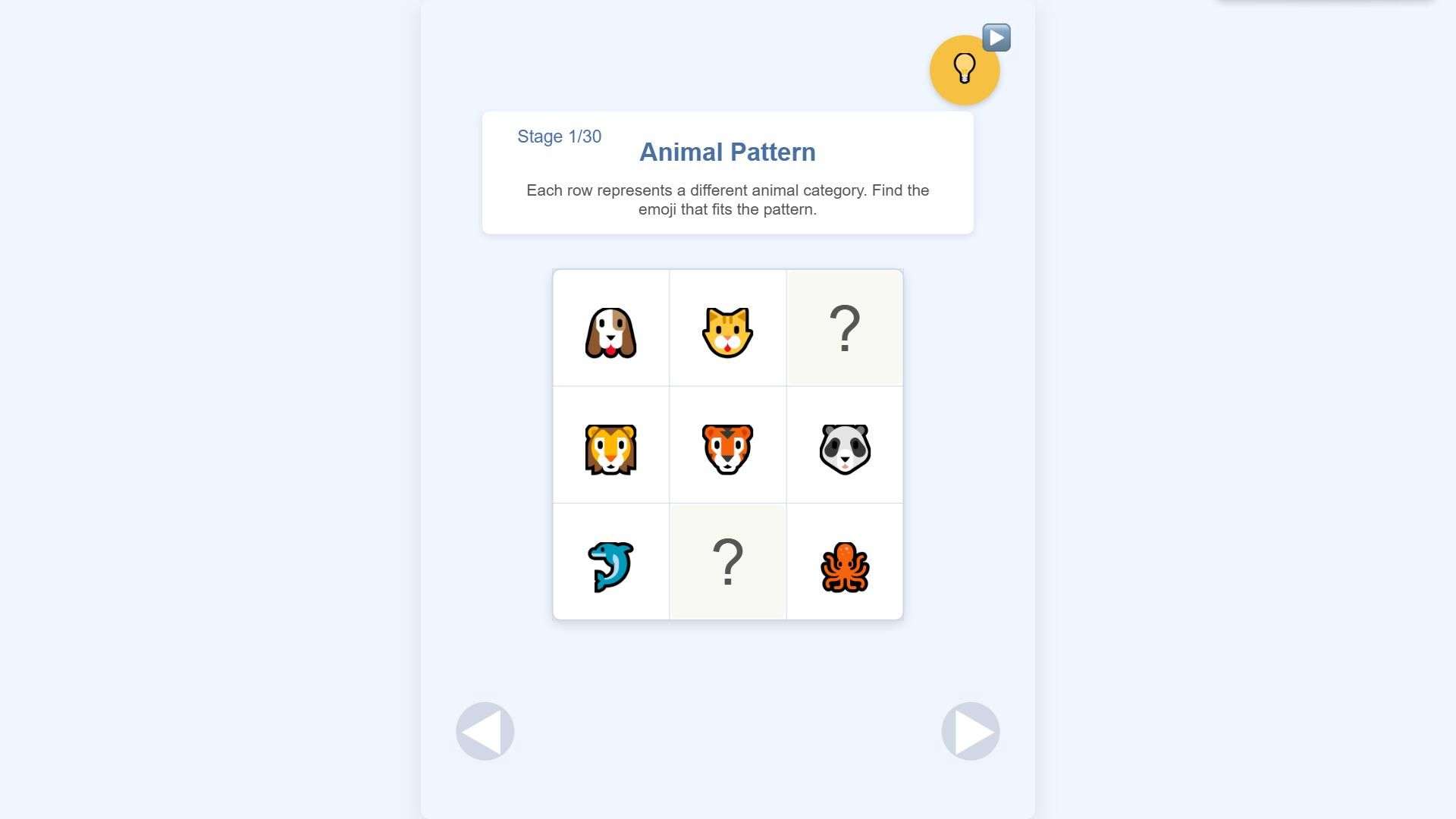 The game presents you with grids of different sizes. These grids are filled with various emojis, but some cells are left blank. These emojis are not arranged randomly; they hide specific patterns. They could be of the same category (such as all animals or all fruits), in an ordered sequence (like weather changes or number progression), or in associated combinations (such as food and tableware, or means of transportation and scenes).