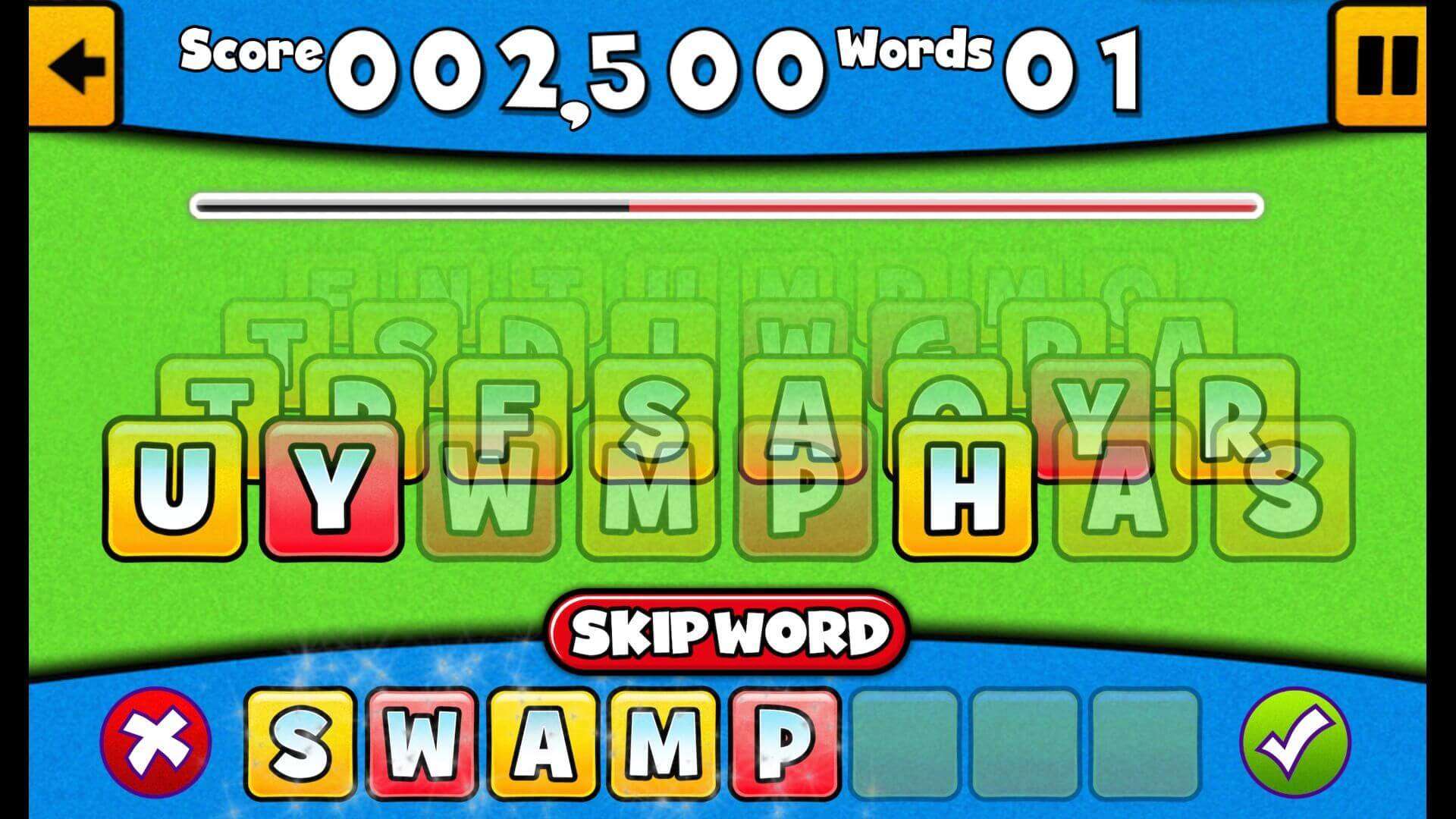 Elevate your score with dazzling special gems that add a tactical twist to word-building: pink gems double your points, blue gems triple them, and rare purple gems multiply scores fivefold. A unique pause rule (3 pauses max per round) ramps up the challenge and keeps the gameplay intense.