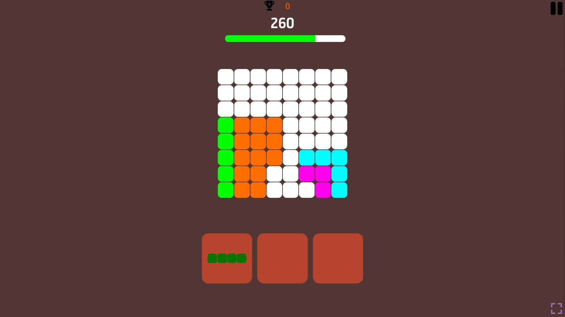 1. Drag randomly generated blocks and place them in empty slots on the board;
