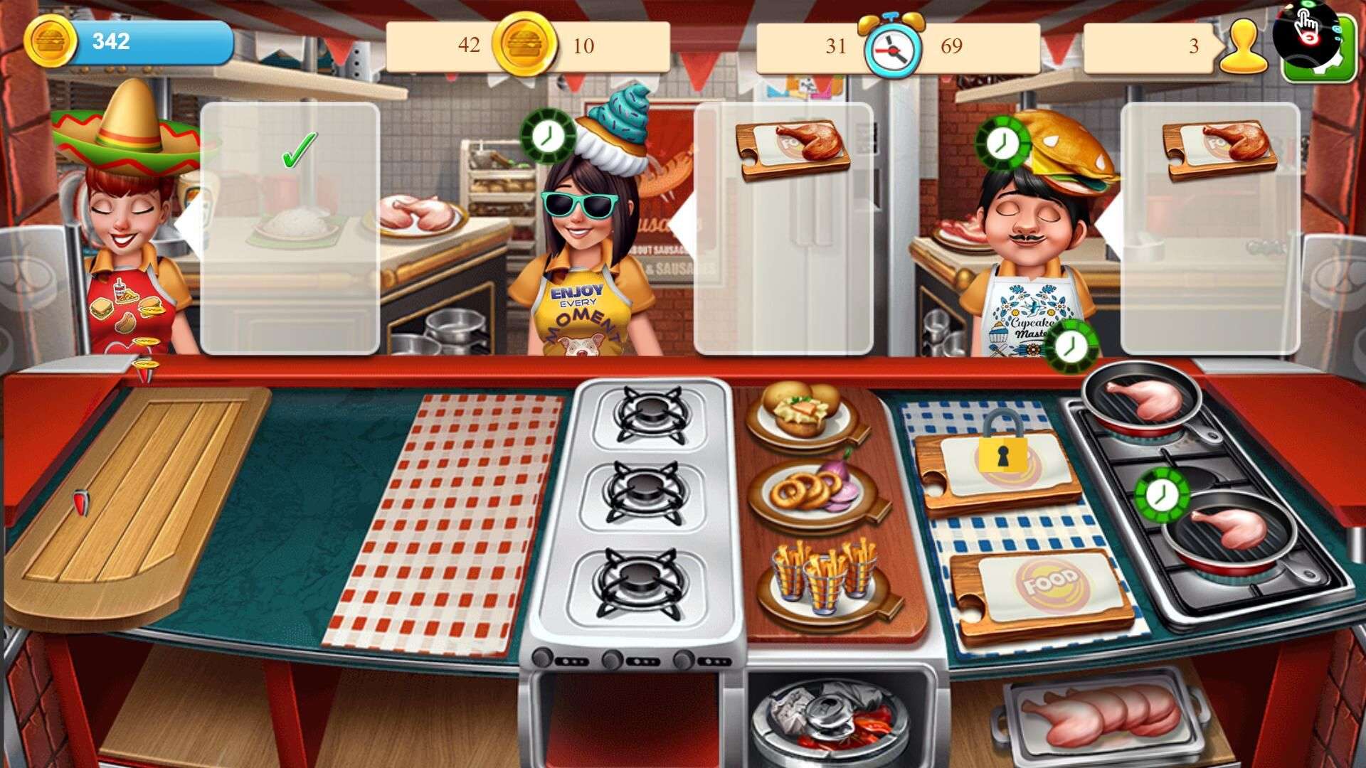 4. Unlock new recipes, ingredients and kitchen tools as you progress.