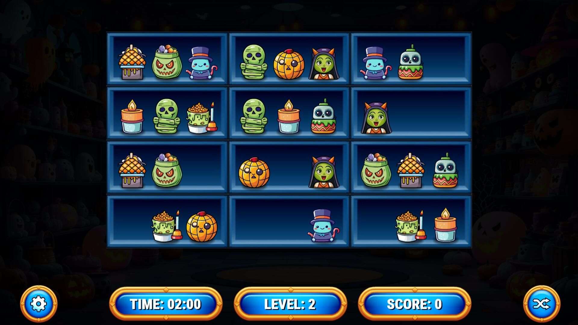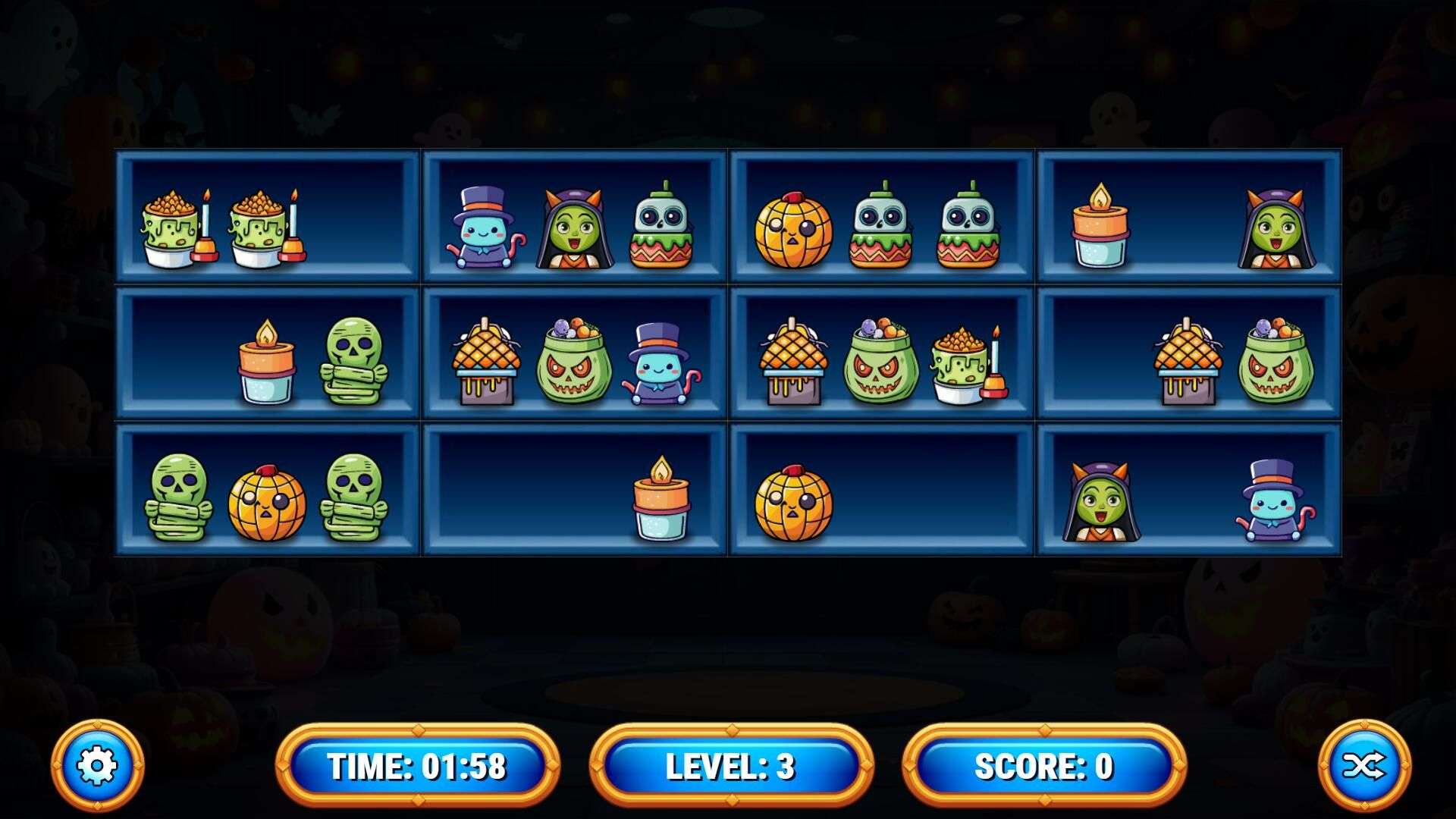 Dive into a festive flurry of sorting fun with Halloween’s spookiest treasures! Drag and match eerie toys, whimsical decorations, and ghoulish goodies between store shelves—line up three of the same to clear space and uncover hidden shelves waiting just off-screen.