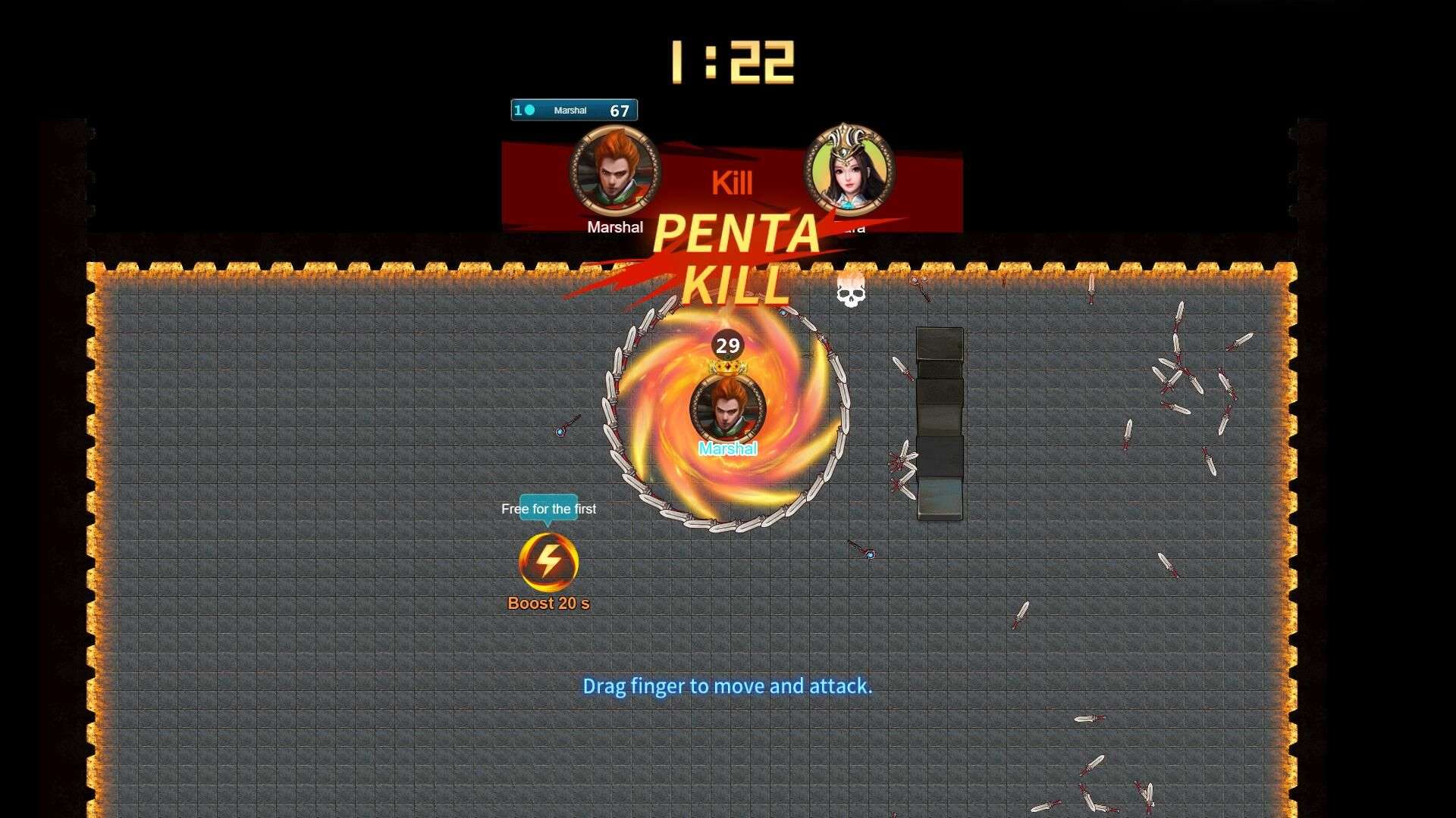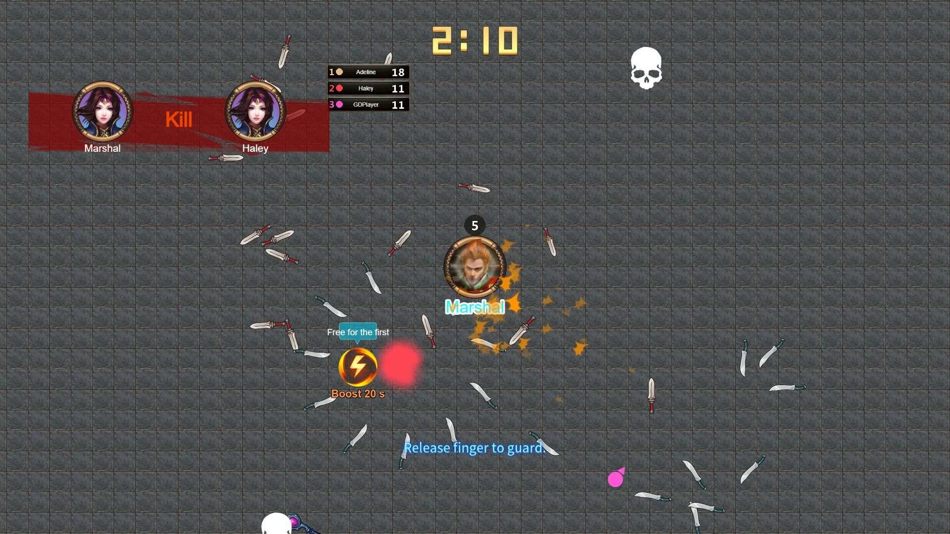 Press and hold the screen: Move your character, dodge enemy attacks and collect knives on the battlefield