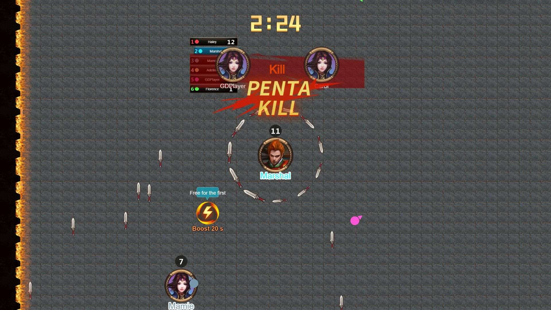 Various knives are scattered across the battlefield; the number of knives you collect directly boosts your attack range and damage, quickly turning you into a dominant force on the field.