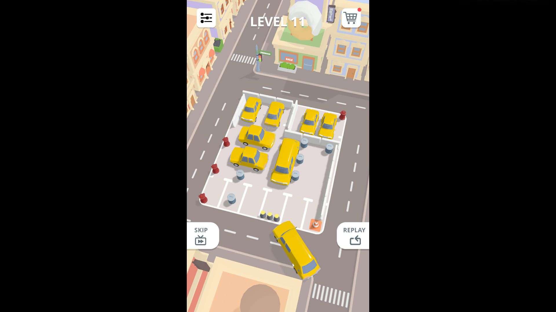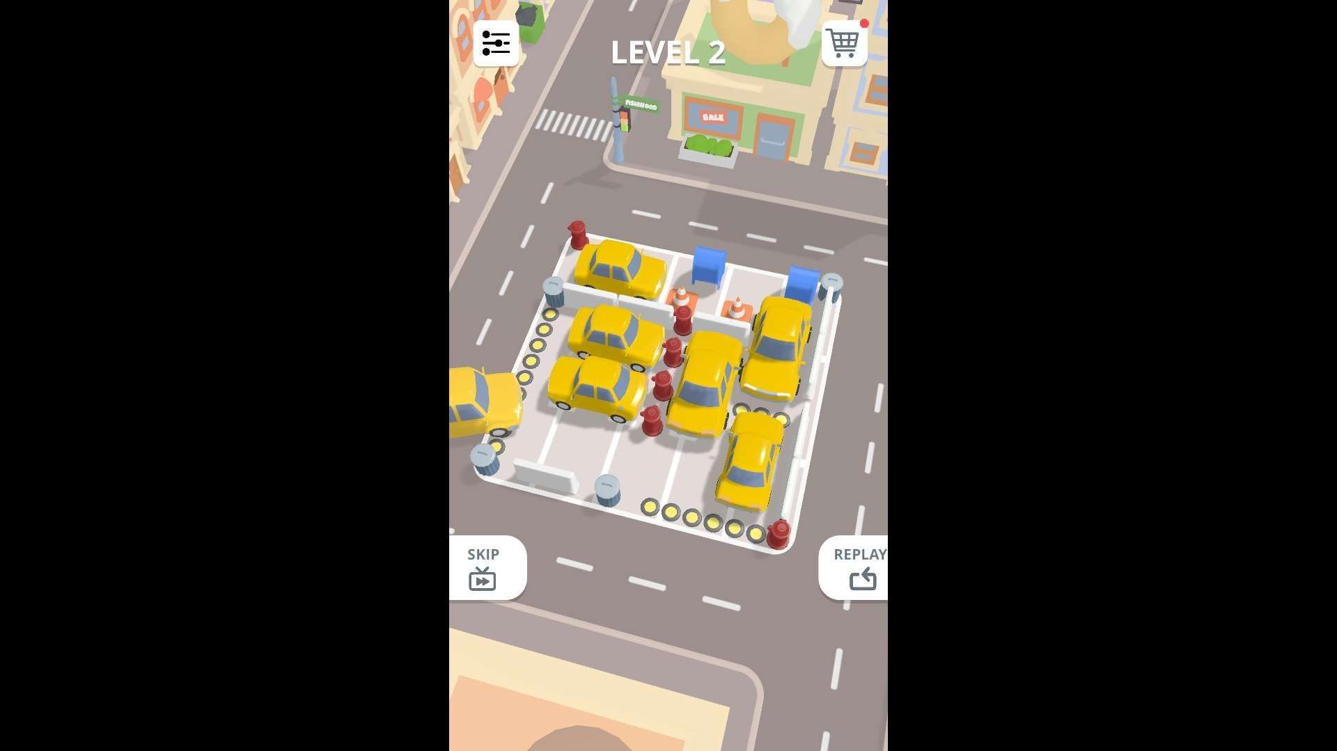 Objective: Gradually move vehicles to make way for other cars until all vehicles drive out of the parking lot smoothly and complete the current level.