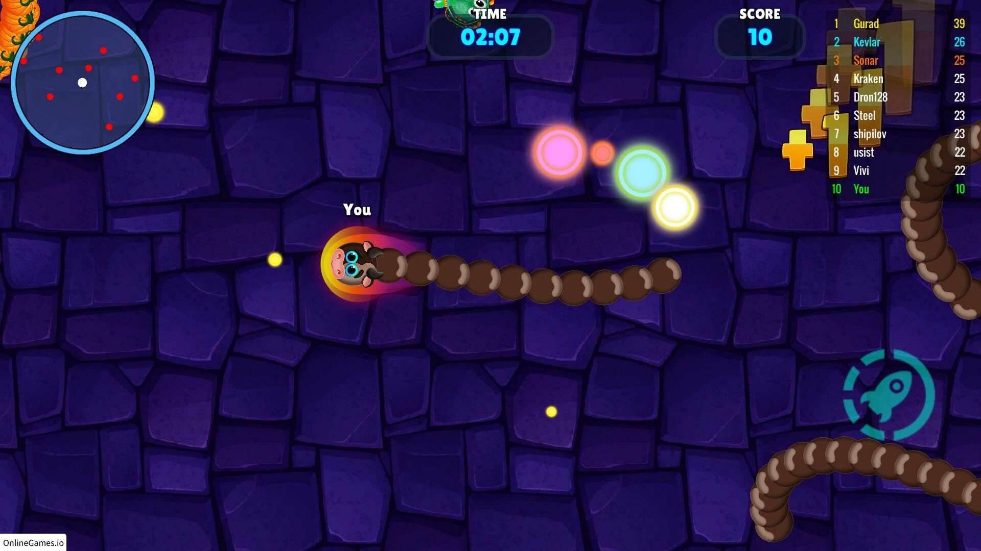 1. Control the direction of your serpent’s head to nimbly dodge opponents and arena boundaries.