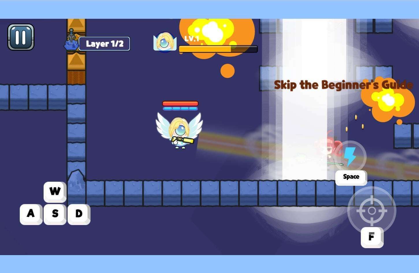 Movement & Evasion: Control via virtual joystick/touch drag to maneuver your hero, dodging enemy lasers and monster waves .