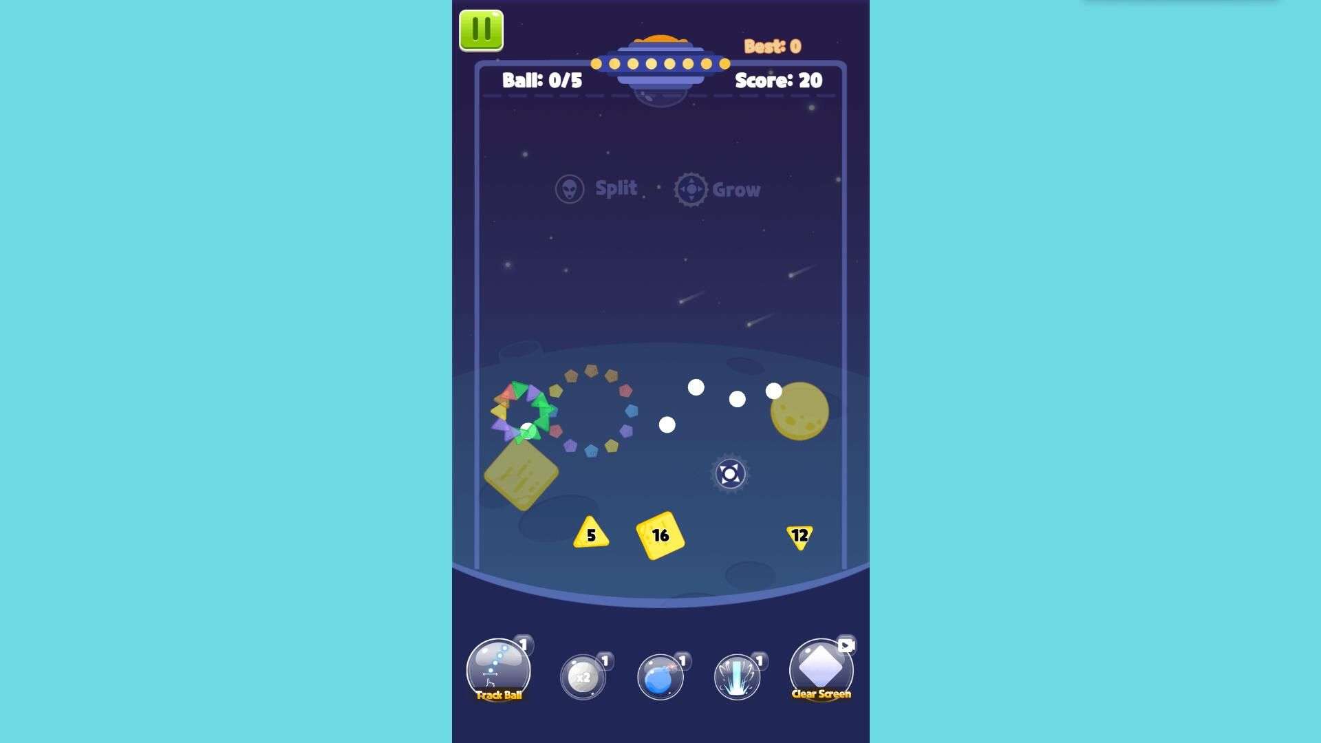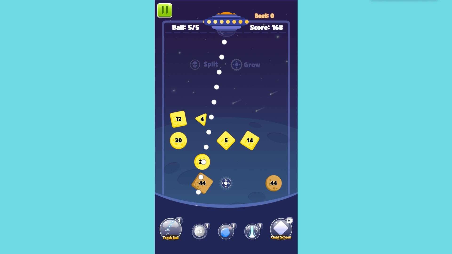 Target Gaps: Aim for gaps between close blocks; use wall bounces to hit misaligned blocks simultaneously.