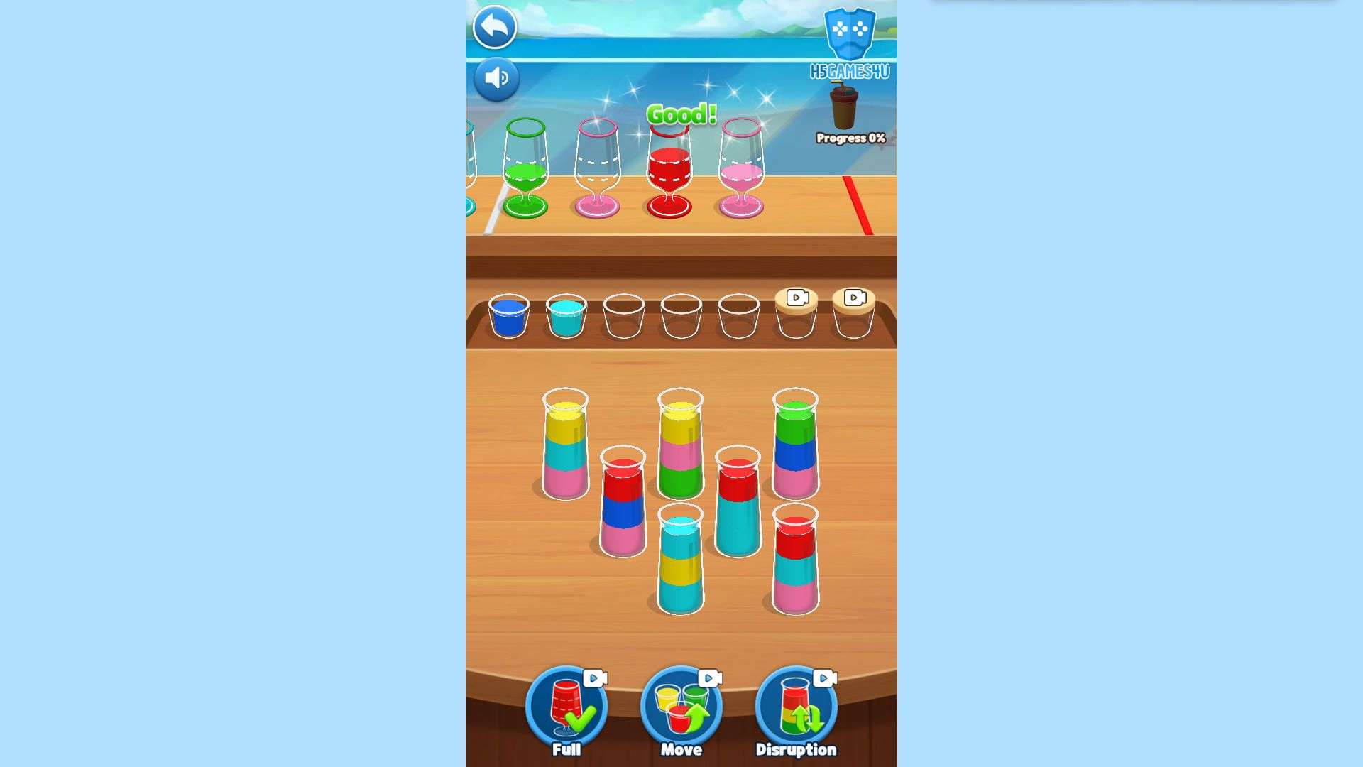 Luckily, you’ve got help when the going gets tough. Reach for handy props like Full, Move, or Disruption to untangle tricky spots and keep the fun flowing. Plan each pour carefully, outsmart the puzzles, and savor that satisfying moment when every color clicks into place.