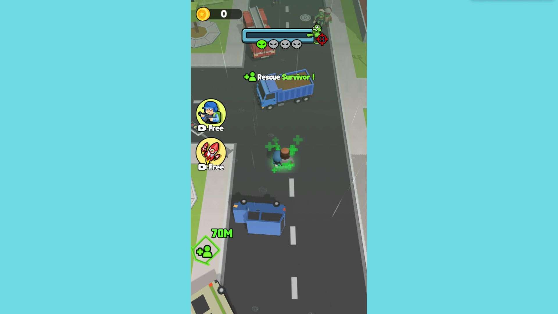 Summoning soldiers and bombs isn't about quantity – it's about reading the situation. Trapped by 3-5 zombies? Summon a soldier to break the encirclement and turn the tide instantly. If you run into a massive horde or a sudden "big" elite zombie, don't hesitate to use a bomb. After clearing the area, get your team out fast before more zombies swarm in. Save resources for when they really "save lives."