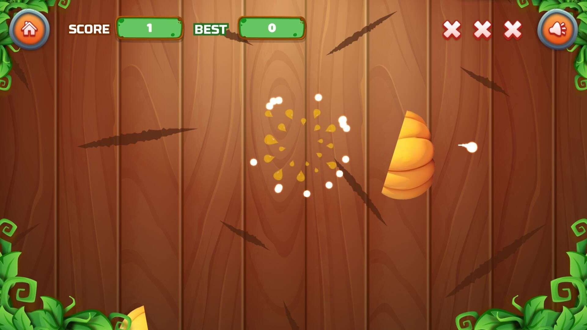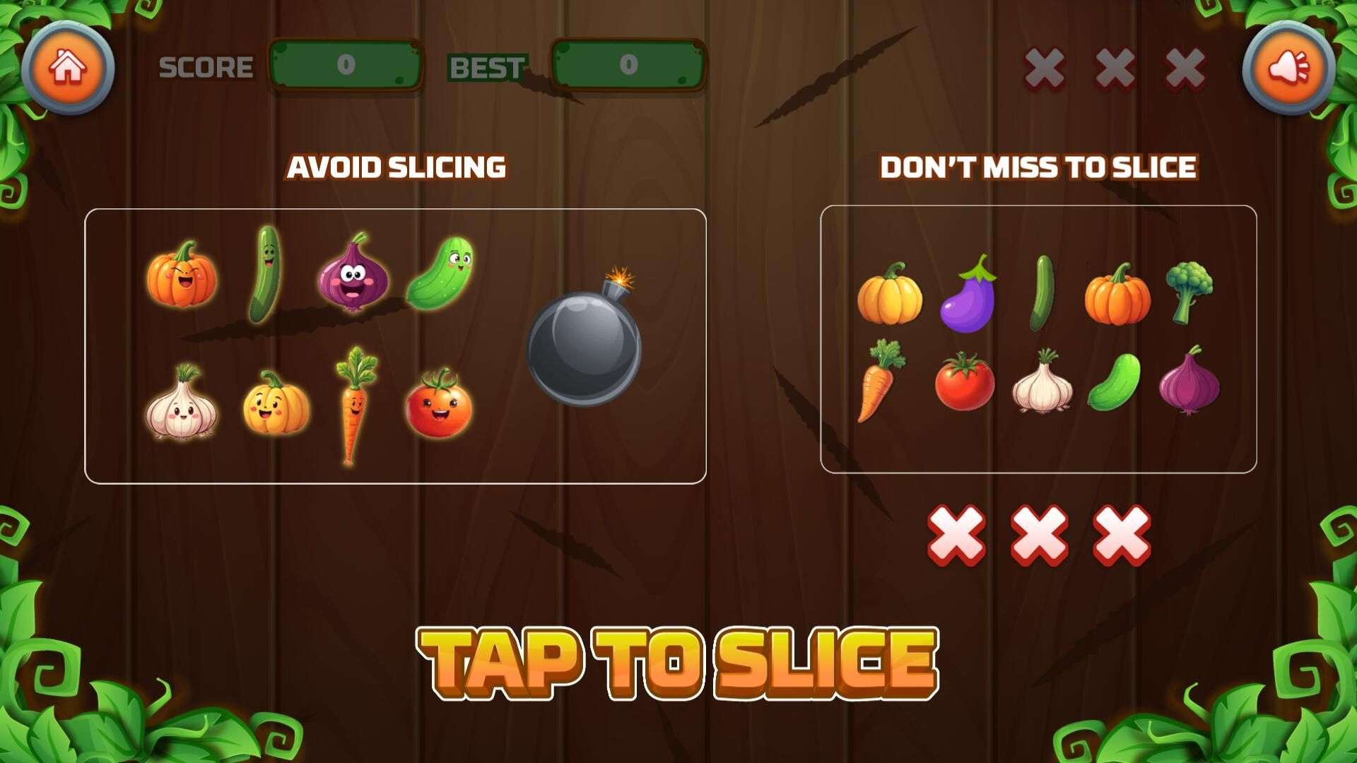 1. Swipe/drag the screen to slice flying veggies and score points.