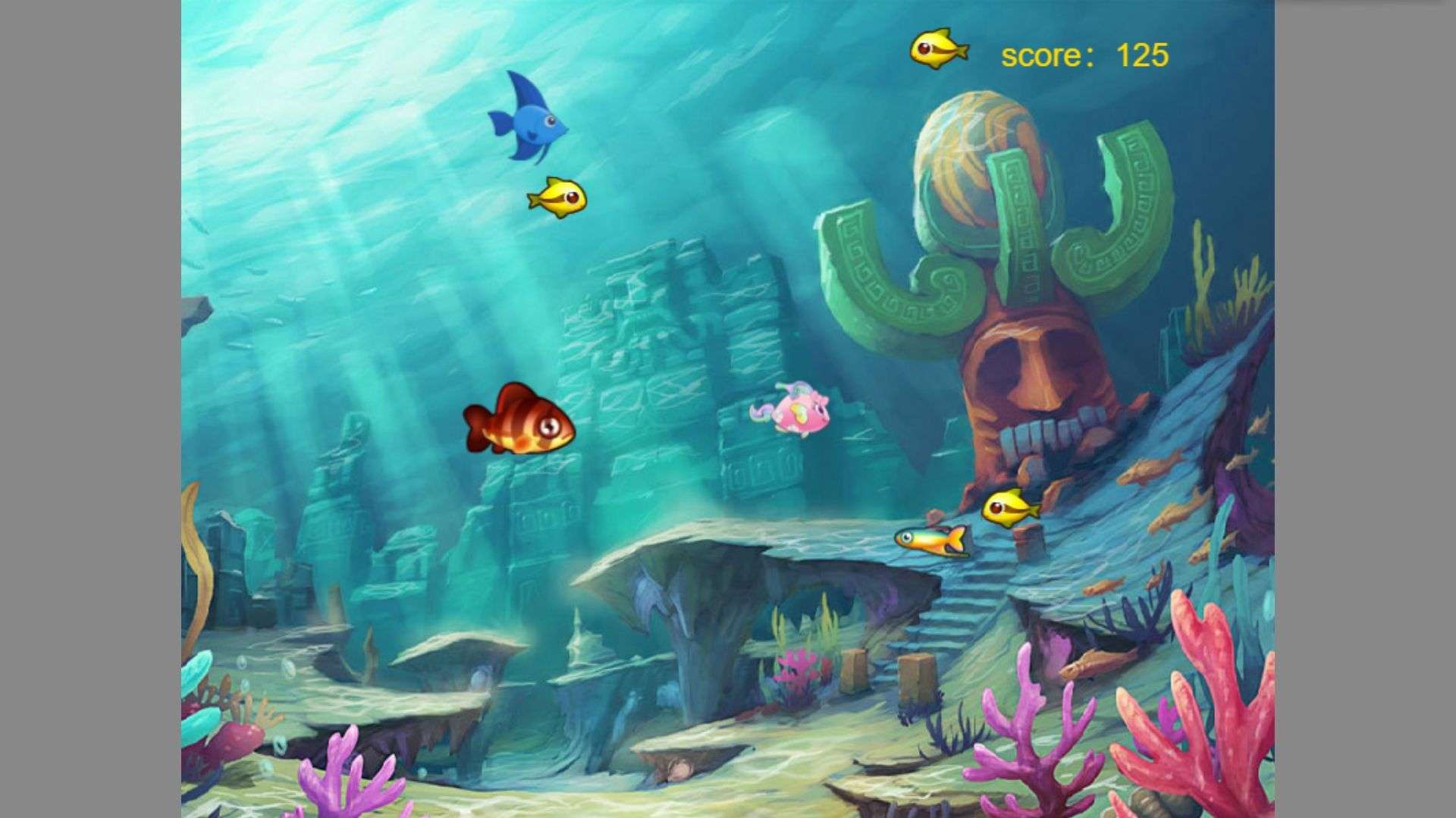 Guide the fish to move freely underwater by sliding the screen or operating the direction keys. Move towards smaller fish, and it will automatically initiate predation when getting close, completing the swallowing action to gain growth energy.
