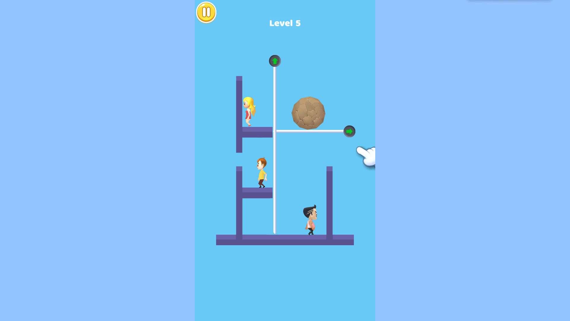 2. Plan the Order: Think: “Which pin should I pull first to keep them safe?” Maybe free a path, trap a rock, or connect platforms.