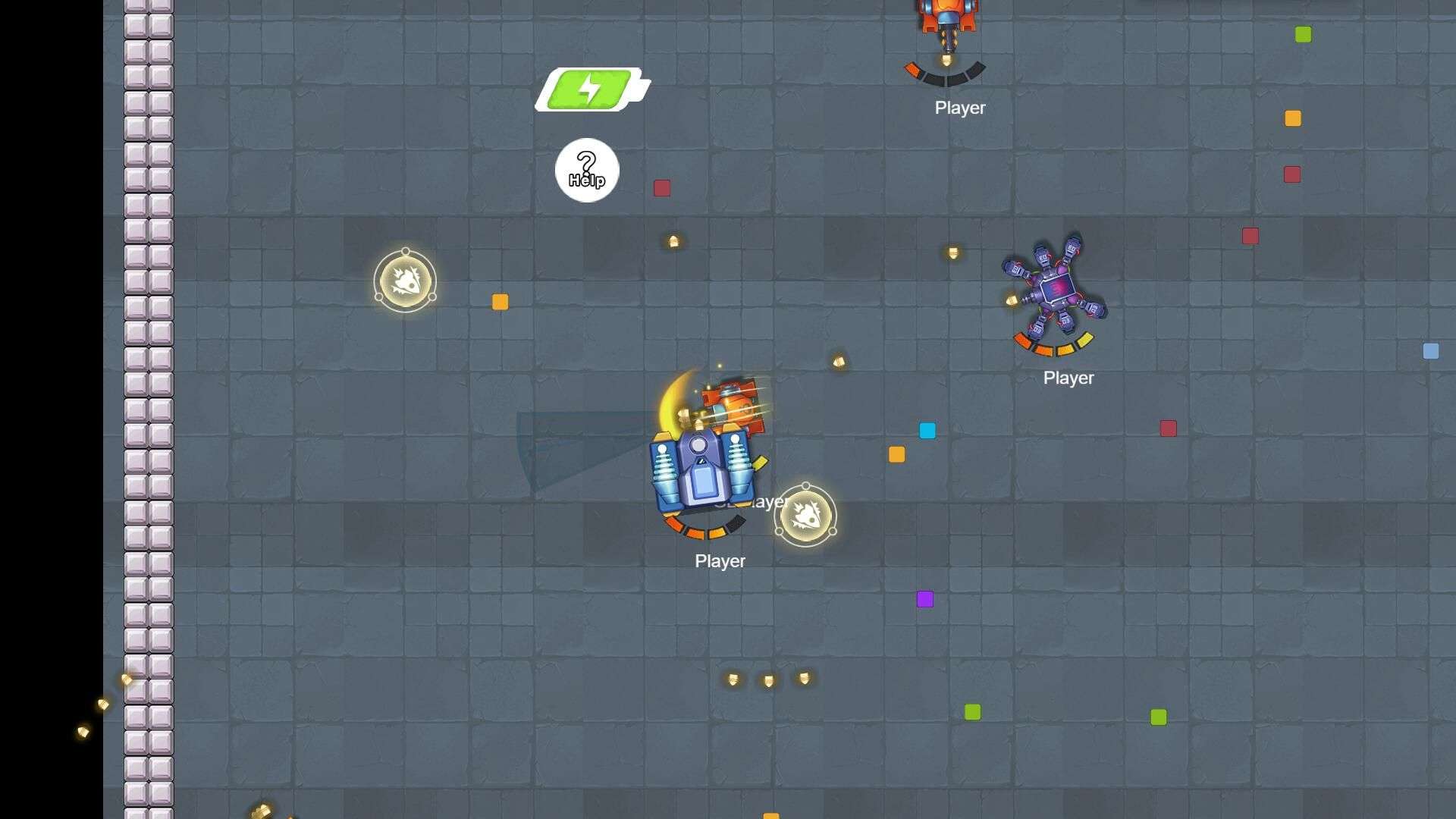 1. Move: Slide the left virtual joystick to control the tank’s movement and steering.