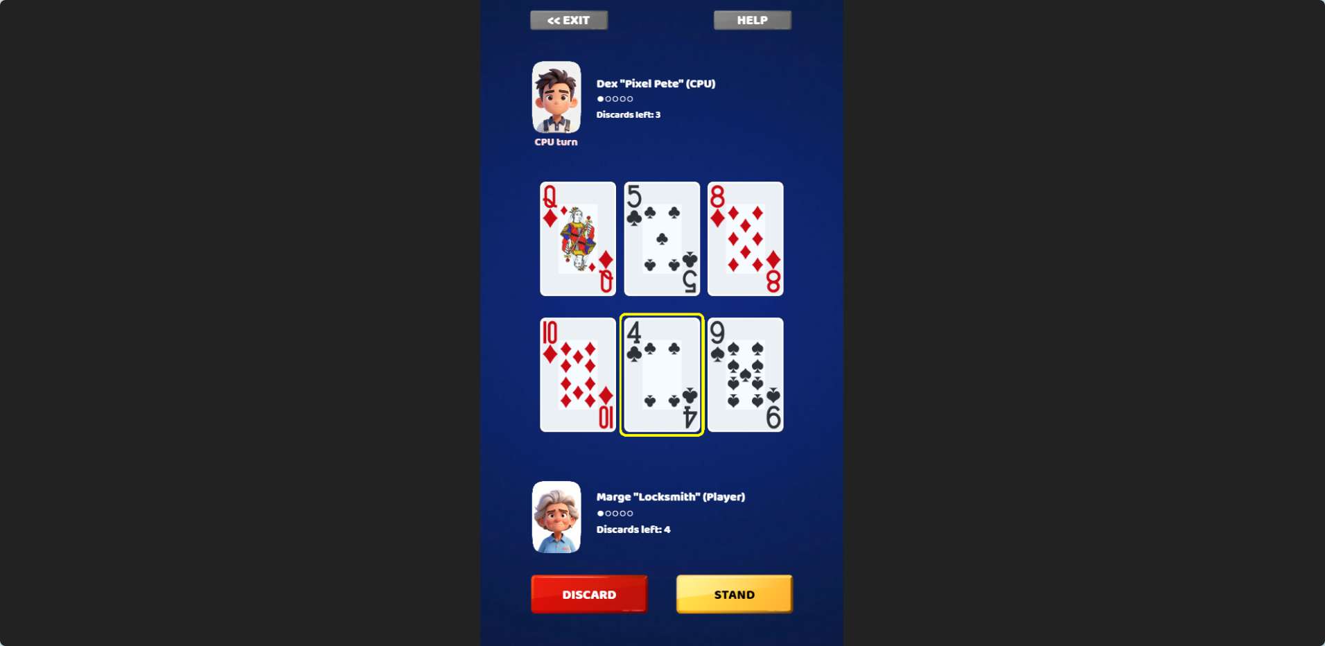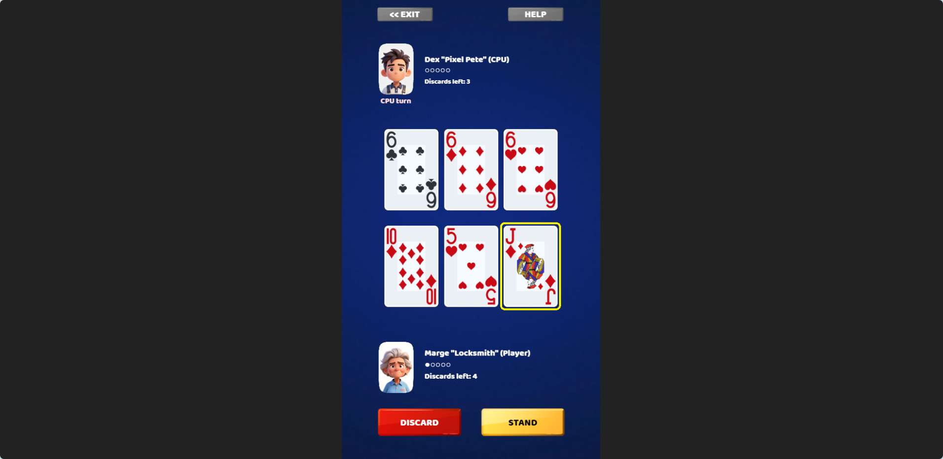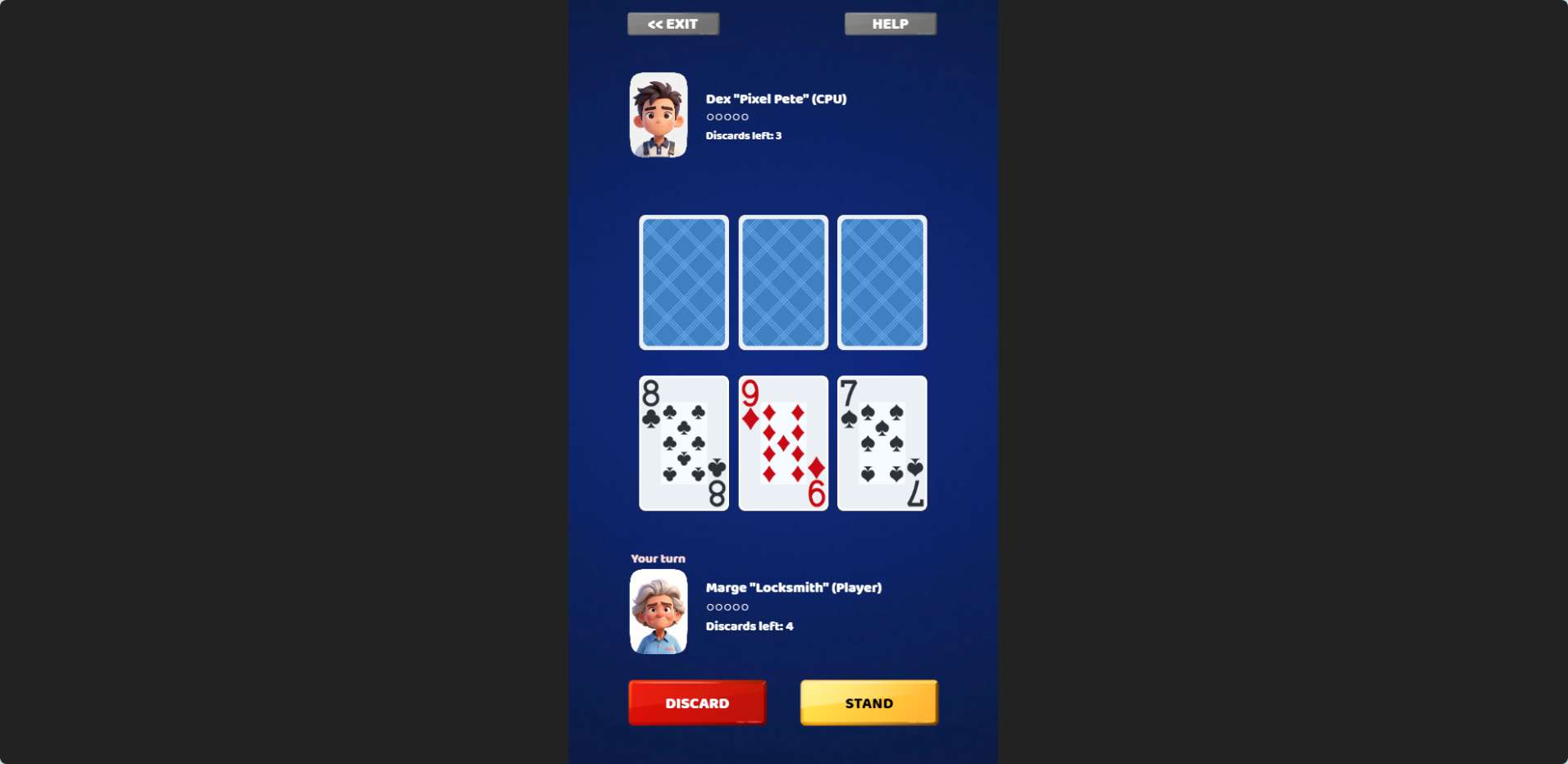 Each round starts with a set of cards dealt face-up. You can pick and choose which cards to hold, then the rest are replaced. After the draw, the game scores your best hand. The better the hand, the higher the points. You play multiple rounds, and your total score adds up.