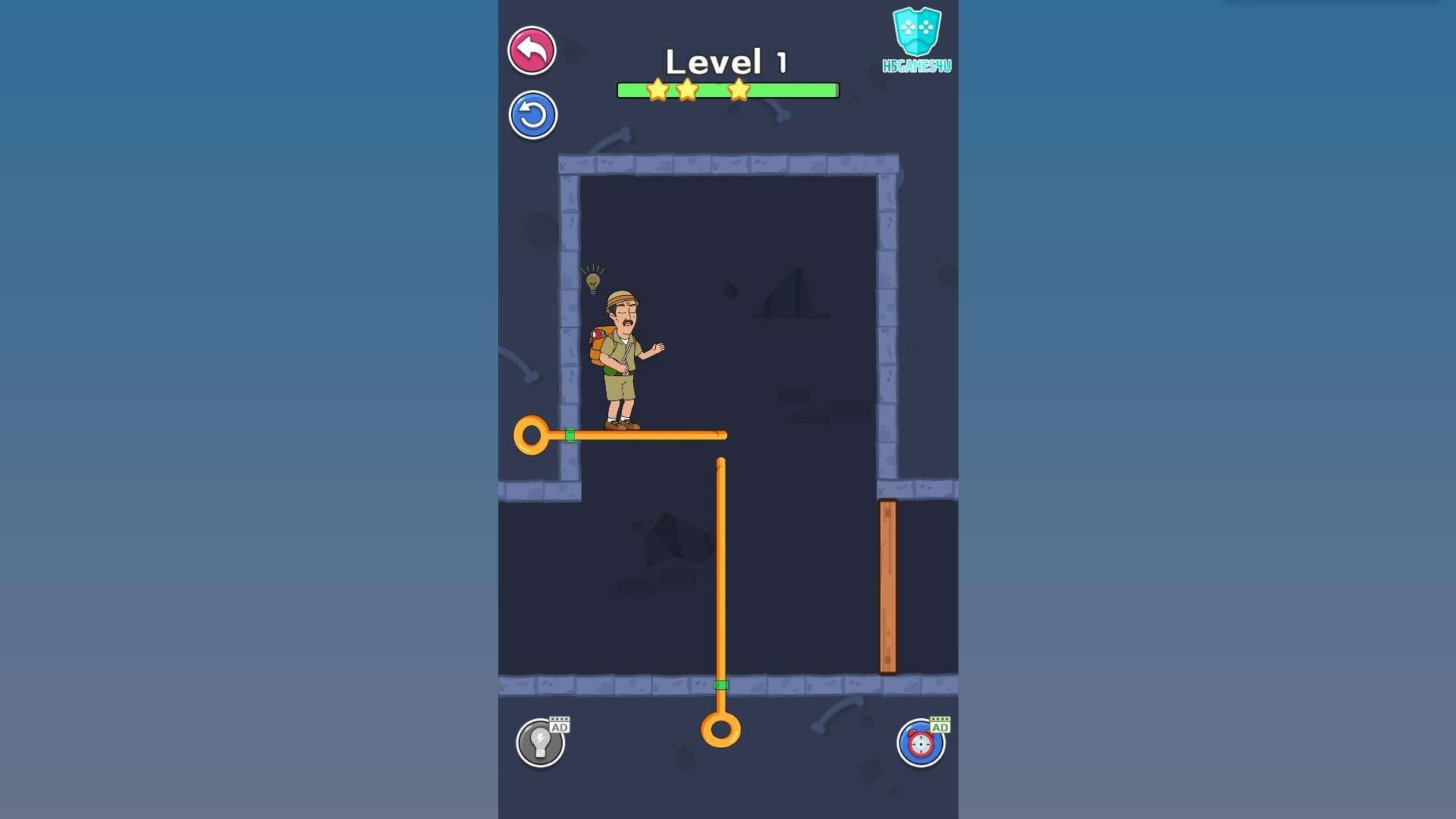 Advanced Skills: Make good use of links to resolve complex scenarios. Mid-levels will feature "multiple overlapping risks" such as the "spider + double traps" combination, where you need to sort out the linkage relationships. A typical scenario: the uncle is trapped on a high place, with spikes below, a spider on the right, and an exit on the left. The correct steps are: first pull the "baffle pin" at the top left to make the stone slide down and press the spike trap; then pull the pin restraining the spider on the right to guide it away from the exit; finally pull the path pin below the uncle to complete the escape. In addition, some pins have "sequential dependency"—for example, you need to pull Pin A first to move an obstacle before you can reach Pin B. Such hidden linkages need to be anticipated by observing changes in the obstacle's position.