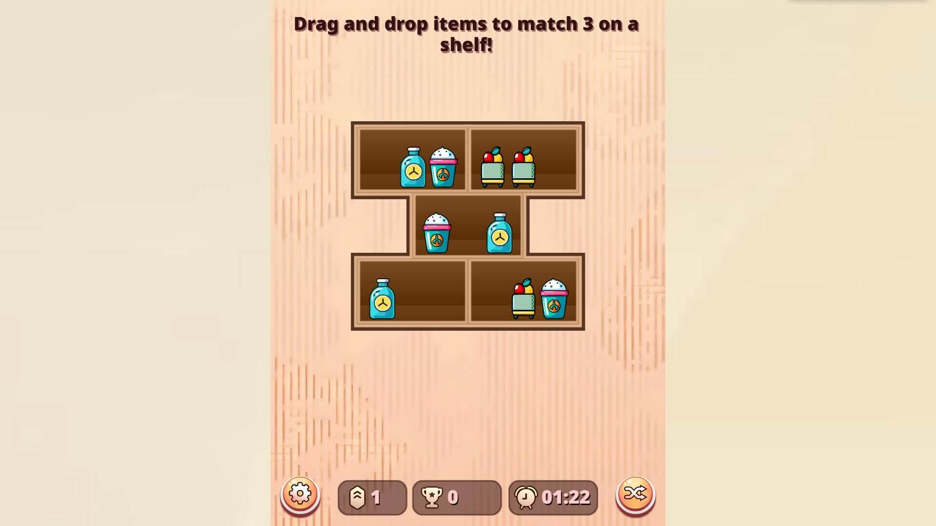 The game is carried by the warm and laid-back shelf scene, without high-intensity competitive pressure. Whether you want to relax in fragmented free time or organize the shelves slowly, you can get soothing fun in the process of shifting and matching items.
