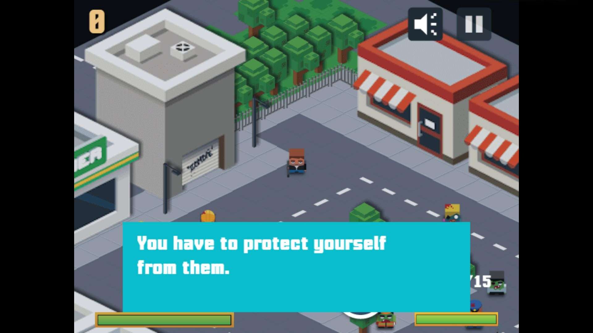 Swipe the screen or tap the virtual direction keys to control the character’s movement through town streets and between buildings. Navigate nimbly to dodge zombie swarms, and find safe paths and resource spots.